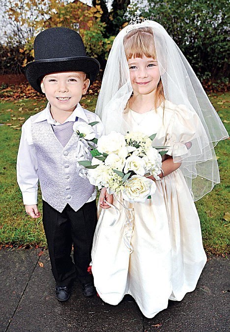 据英国《每日邮报》11月25日消息,这场荒唐的婚礼发生在英国伍斯特市的沃恩顿小学。这场婚礼在当地郊区的教堂举行,不但有牧师主持,还有登记员为新人注册。此外,“新郎”和“新娘”的家长均参加了婚礼。两位“新人”穿着华丽的结婚礼服乘坐奔驰轿车抵达教堂,沃恩顿小学的教职工还为宾客准备了美味的蛋糕和各种点心。婚礼之正式,丝毫不亚于成年人的婚礼。