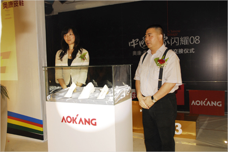 7月1日,由北京2008年奥运会皮具产品供应商奥康集团承接制作北京2008年奥运会礼仪用鞋顺利交接到奥组委手中。此次礼仪用鞋的顺利交接标志着温州鞋无论从款式设计、产品质量还是品牌美誉都得到了国际认可,并代表了中国形象。